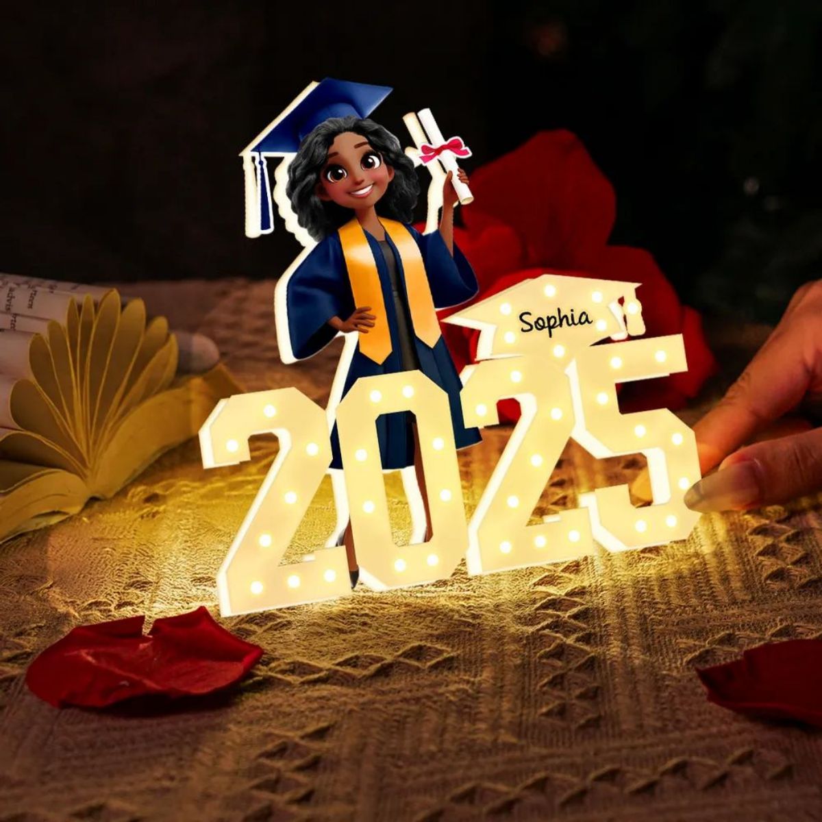 Whether placed on a nightstand, bookshelf, or desk, this personalized light box is a daily reminder of how far they’ve come—and how bright their future is.
