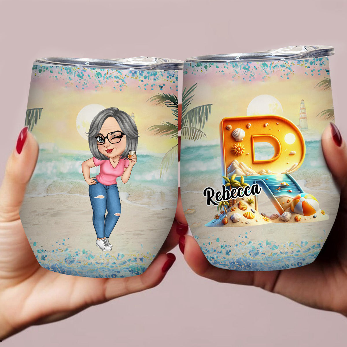 Best Summer Beach Vacation Monogram - Personalized Wine Tumbler