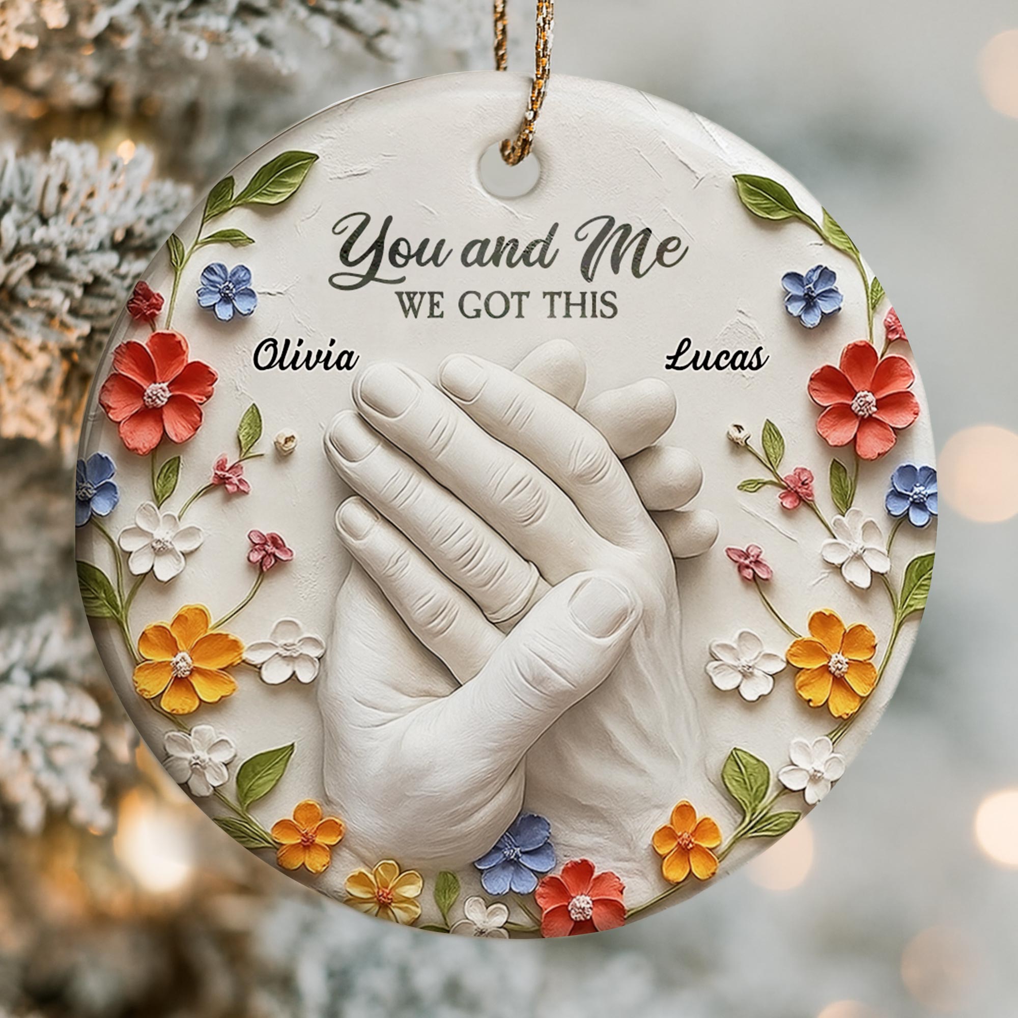 🎄Celebrate your unbreakable bond with this delicate ceramic ornament featuring clasped hands and flowers—a timeless symbol of your connection. Personalize it with your names or a special date to create a cherished keepsake for you and your partner.