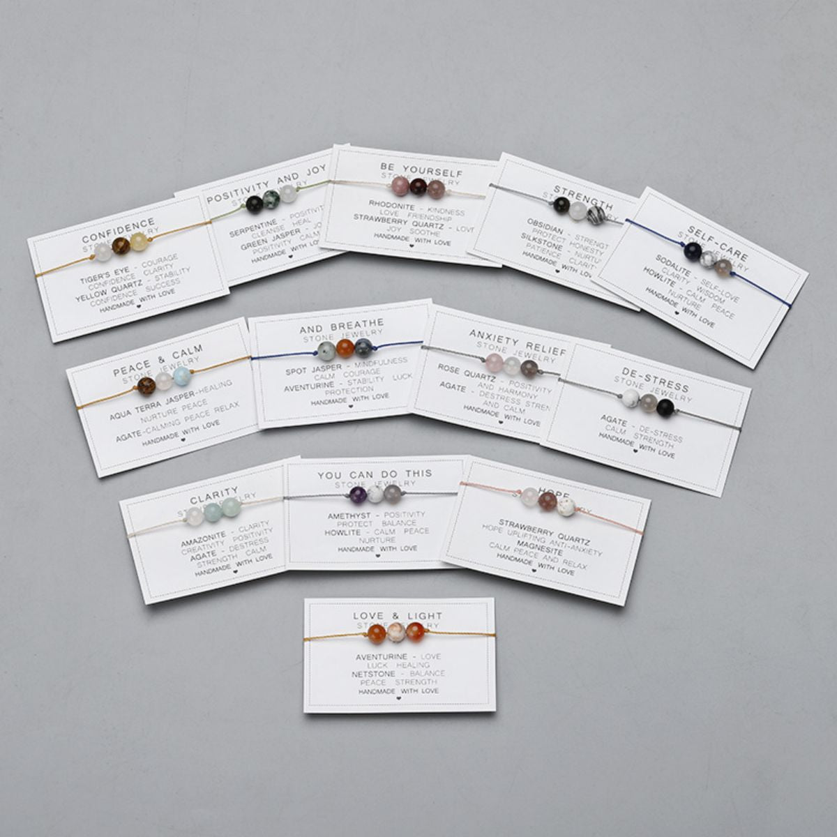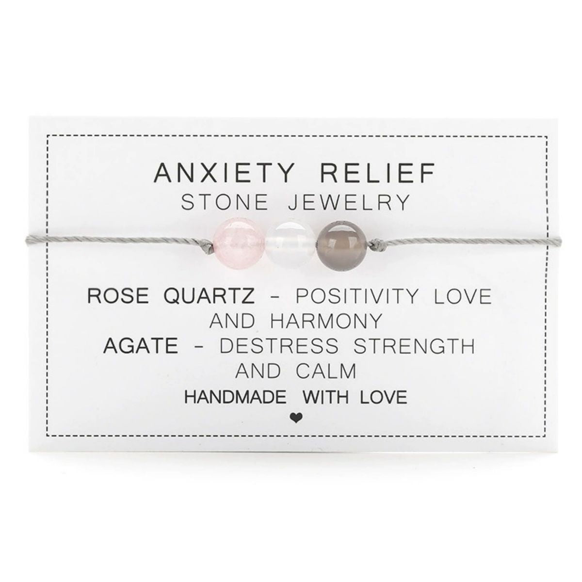 • Anxiety Relief with Agate (destress, strength and calm) and Rose Quartz (positivity, love and harmony)