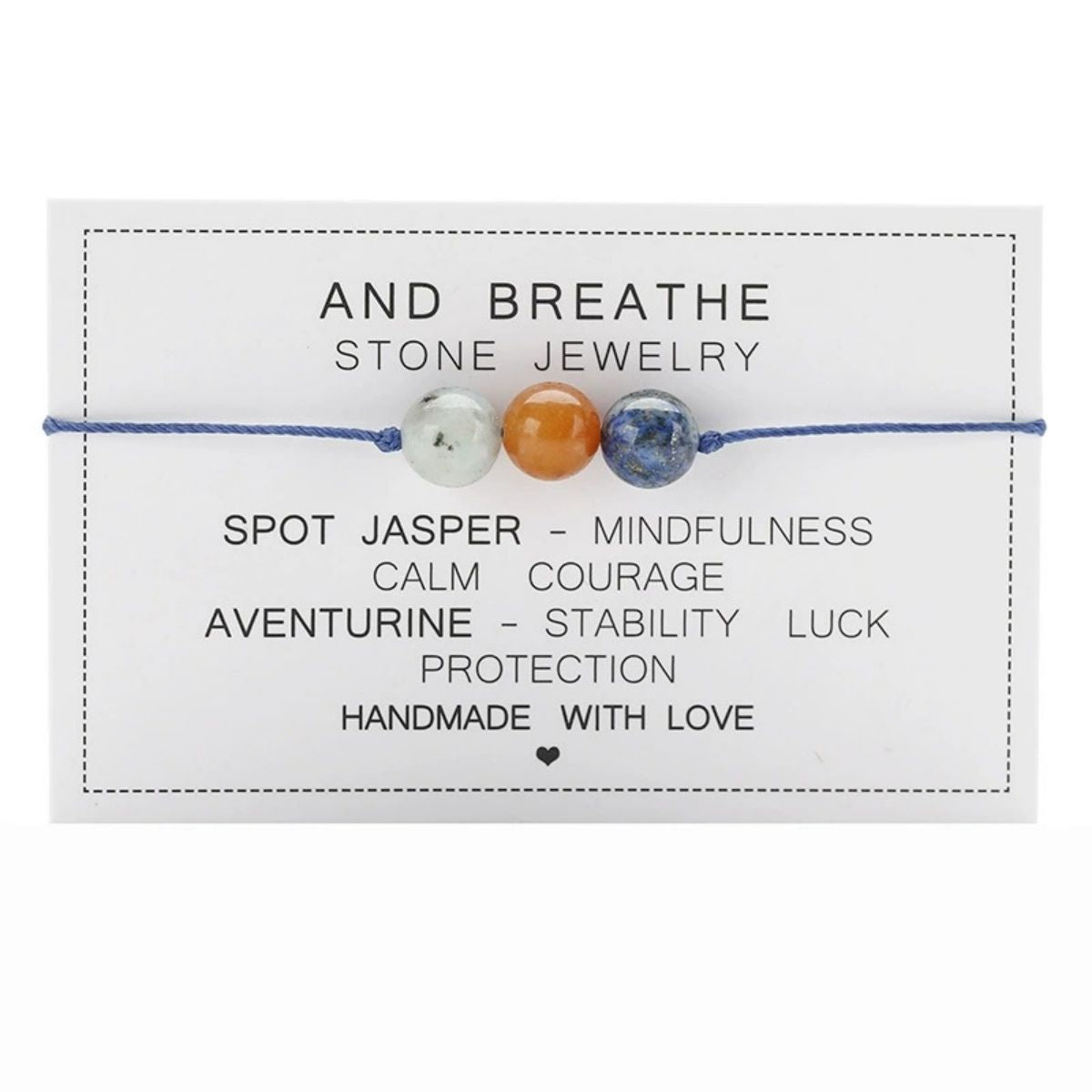• And Breathe with Spot Jasper (mindfulness, calm, courage) and Aventurine (stability, luck, protection)