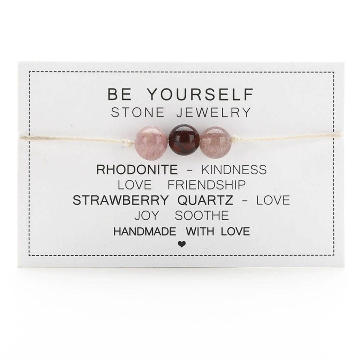 • Be Yourself with Rhodonite (kindness, love, friendship) and Strawberry Quartz (love, joy, soothe)