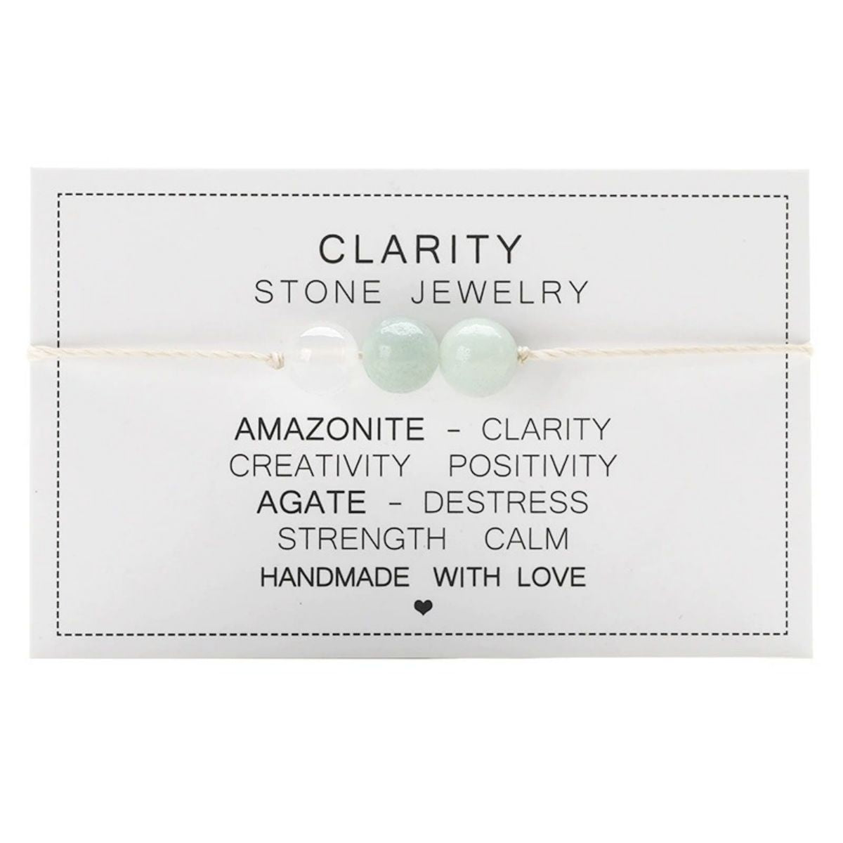 • Clarity with Amazonite (clarity, creativity, positivity) and Agate (destress, strength, calm)