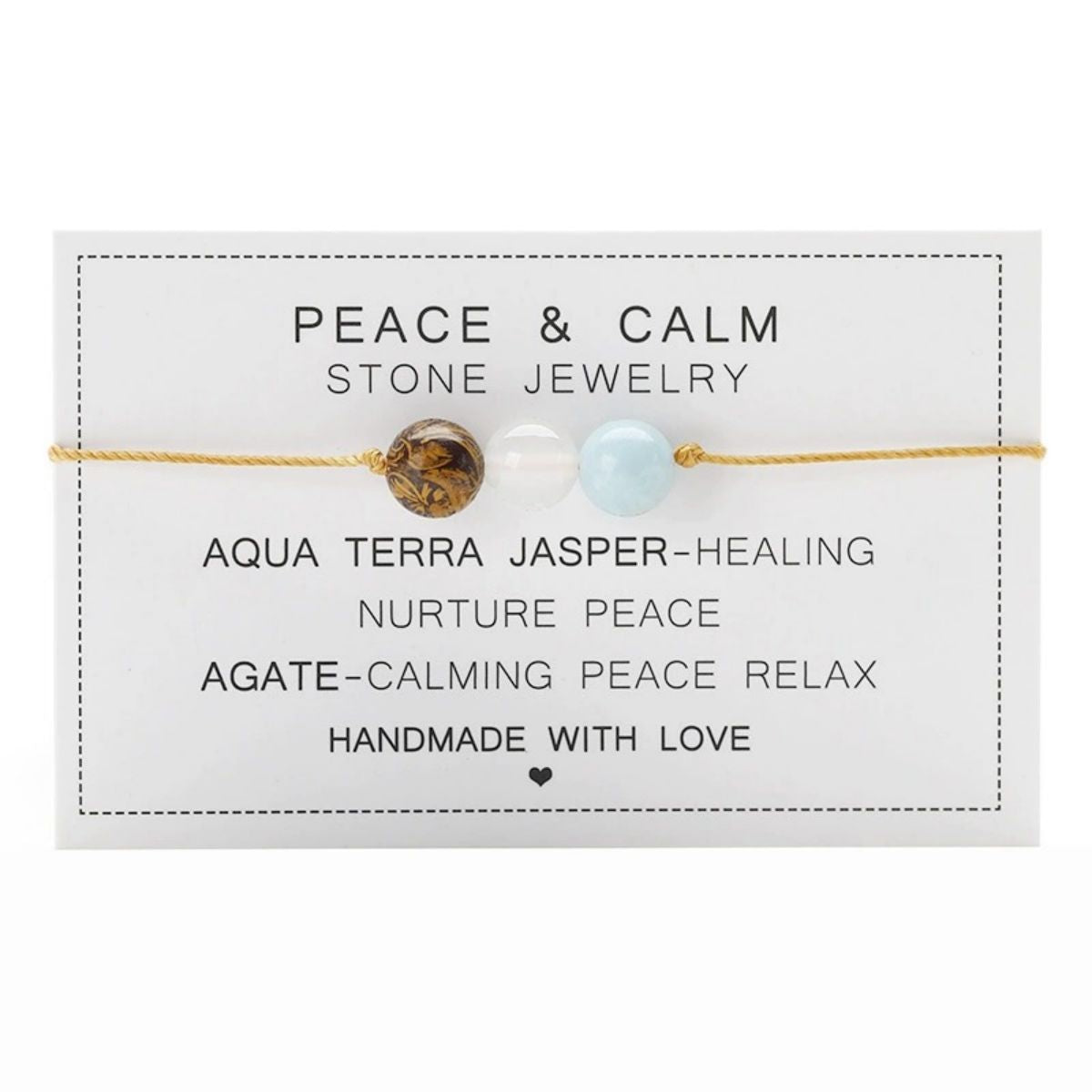 • Peace and Calm with Aqua Terra Jasper (healing, nurture, peace) and Agate (calming, peace, relax)