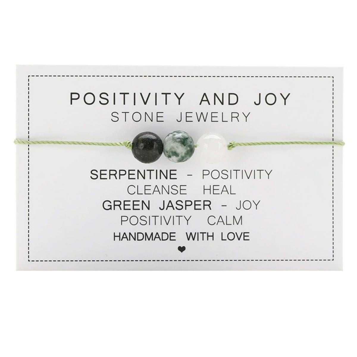 • Positivity and Joy with Serpentine (positivity, cleanse, heal) and Green Jasper (joy, positivity, calm)