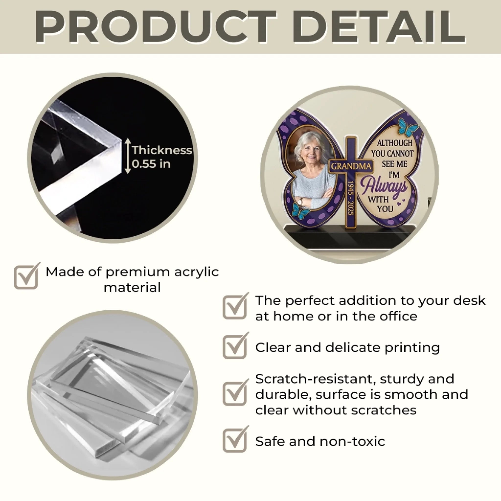 • Material: Made of acrylic plexiglass, environmentally friendly, pollution-free, and odorless. Professional printing technology for a permanent and fade resistant finish that will last for many years.