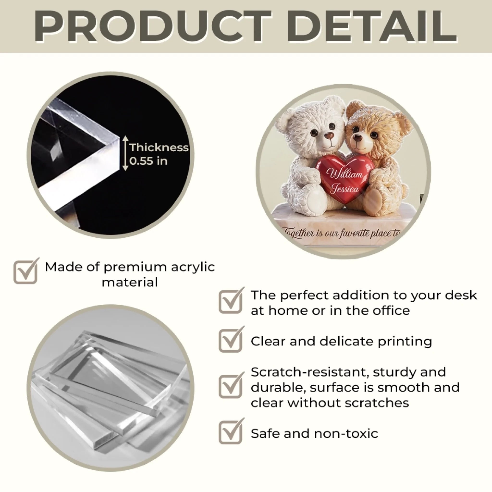 💖Celebrate your love with this adorable custom acrylic plaque shaped like a cuddling bear! Perfect for couples, it’s a playful and heartfelt gift to cherish your special bond. Personalize it to make anniversaries or any moment together even more memorable. A sweet keepsake that hugs your heart every day!