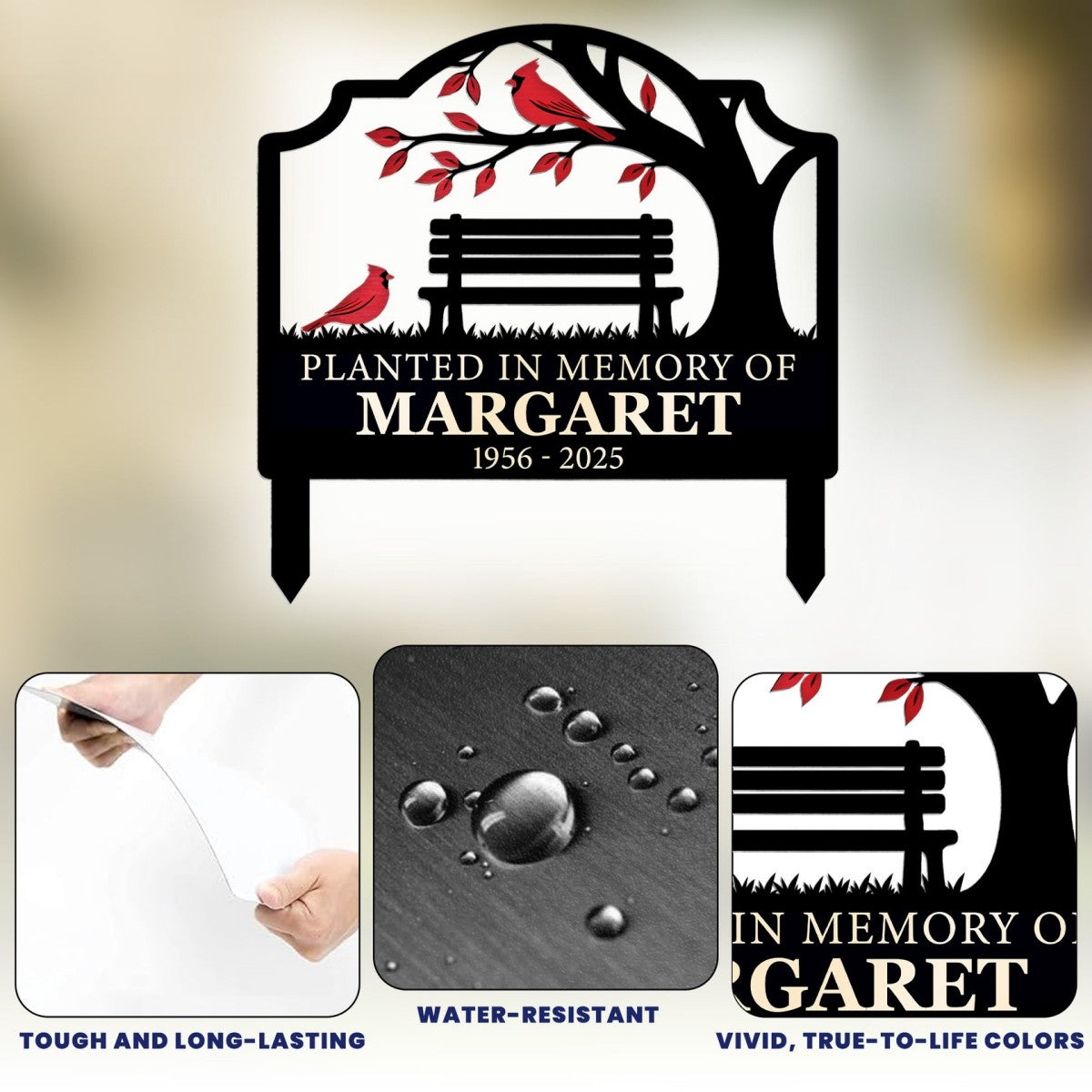 Our garden stake fosters a connection to the departed loved one, while subtly hinting at the message, "planted in memory of, not a day goes by that you are not missed", without directly quoting it.