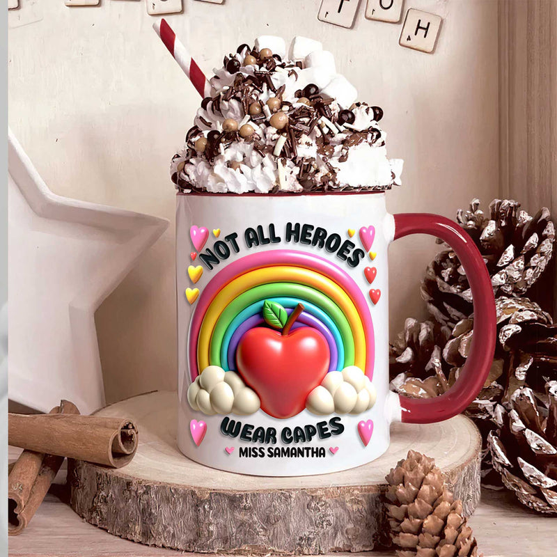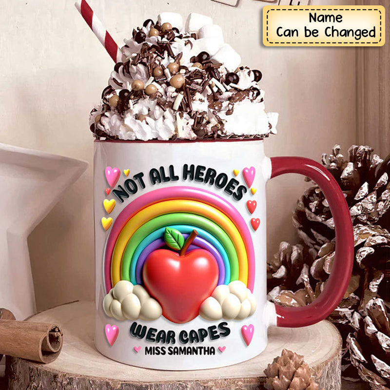 Not All Heroes Wear Capes Teacher Counselor Educator Personalized Accent Mug
