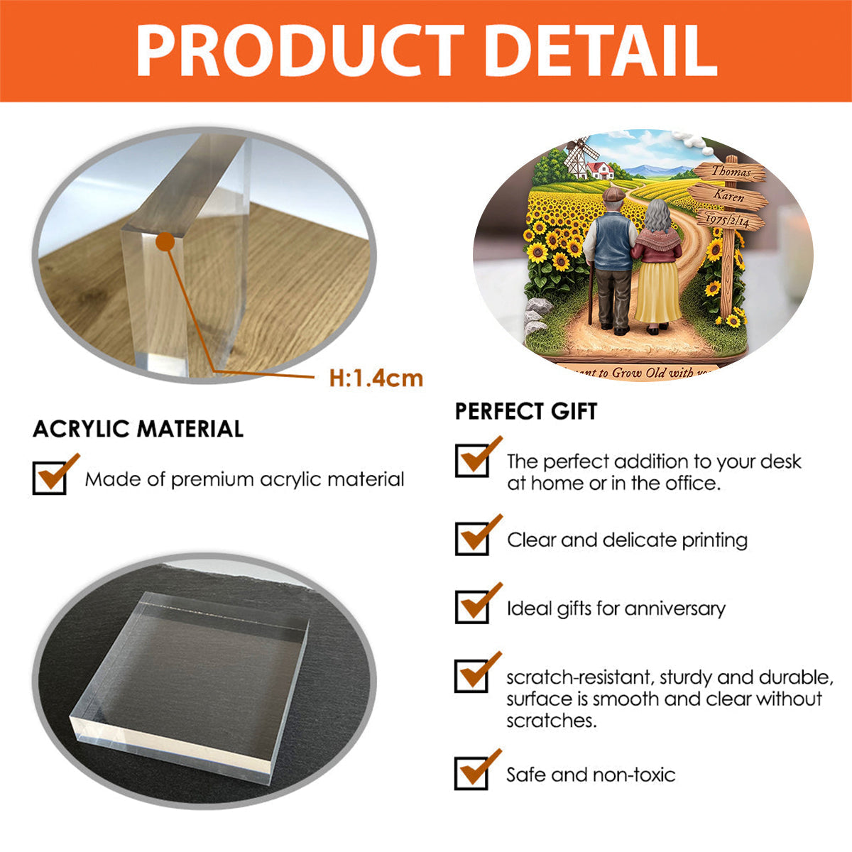 Celebrate decades of love with our Old Couple Acrylic Plaque! This charming personalized keepsake captures the essence of growing old together—wrinkles, wisdom, and all that wonderful weirdness that comes with long-term love. Add names and dates for a gift that says, "I want to grow old with you!" Guaranteed to earn prime real estate on any mantelpiece.Perfect for old married couples, this keepsake adds a sweet, whimsical touch to any home, reminding them that growing old together is the best adventure of all.