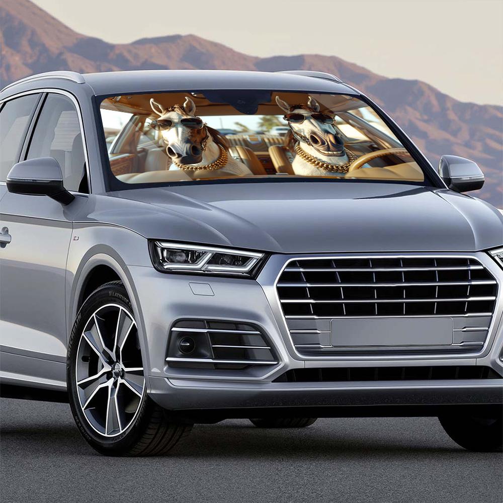 Protect your car from the scorching sun with our Personalized Auto Horse Windshield Sunshade. Made of durable mesh material, this custom shade not only blocks harmful UV rays but also adds a touch of personality to your vehicle. Perfect for horse lovers, make a statement with our unique design while keeping your car cooler.