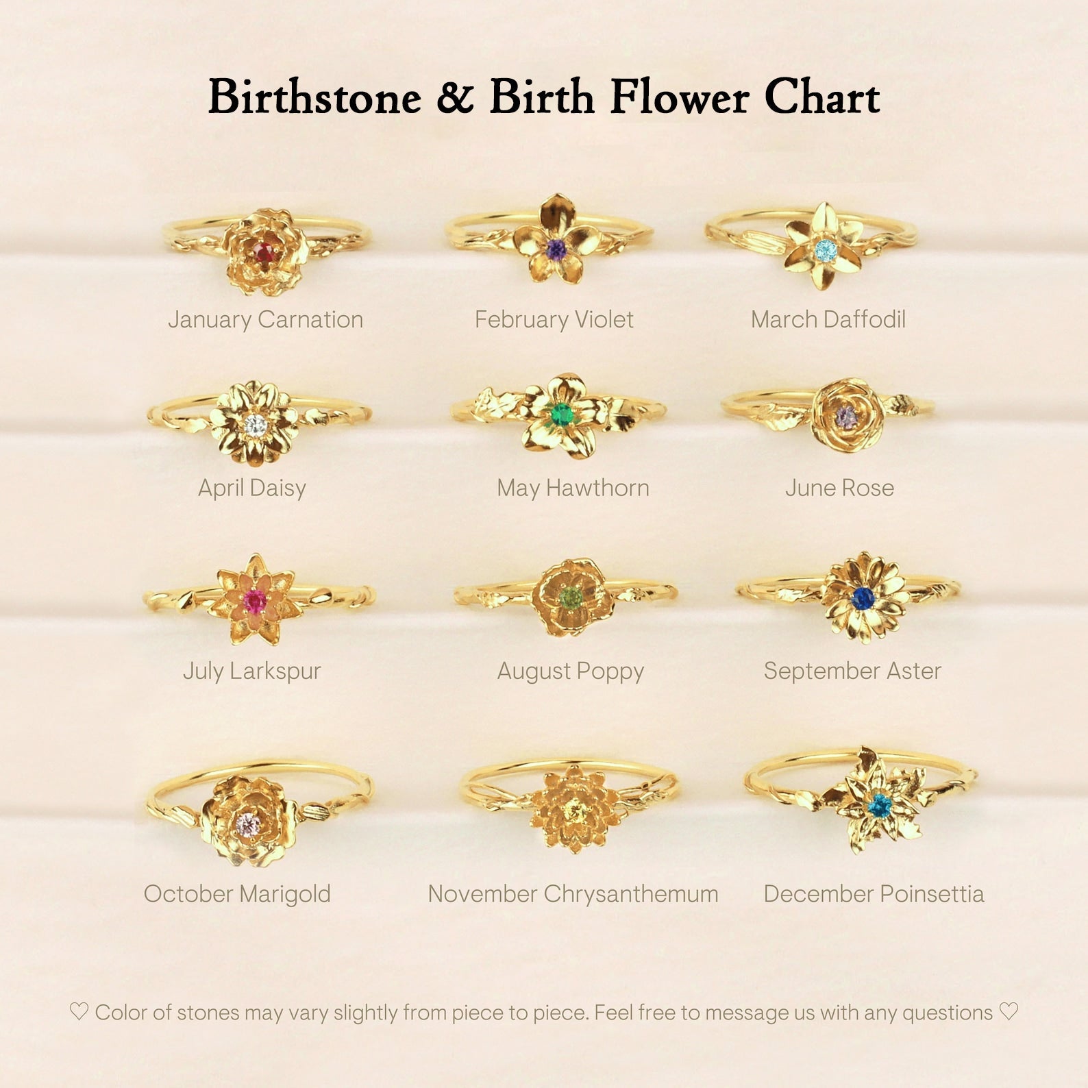 Introducing our Personalized Birth Flower Birthstone Ring! Combining your birth flower and birthstone, this vintage inspired ring is handmade with delicate craftsmanship. Add a unique touch to your ensemble, whether it's for an everyday outfit or a special birthday celebration. Embrace your birth month in style!
