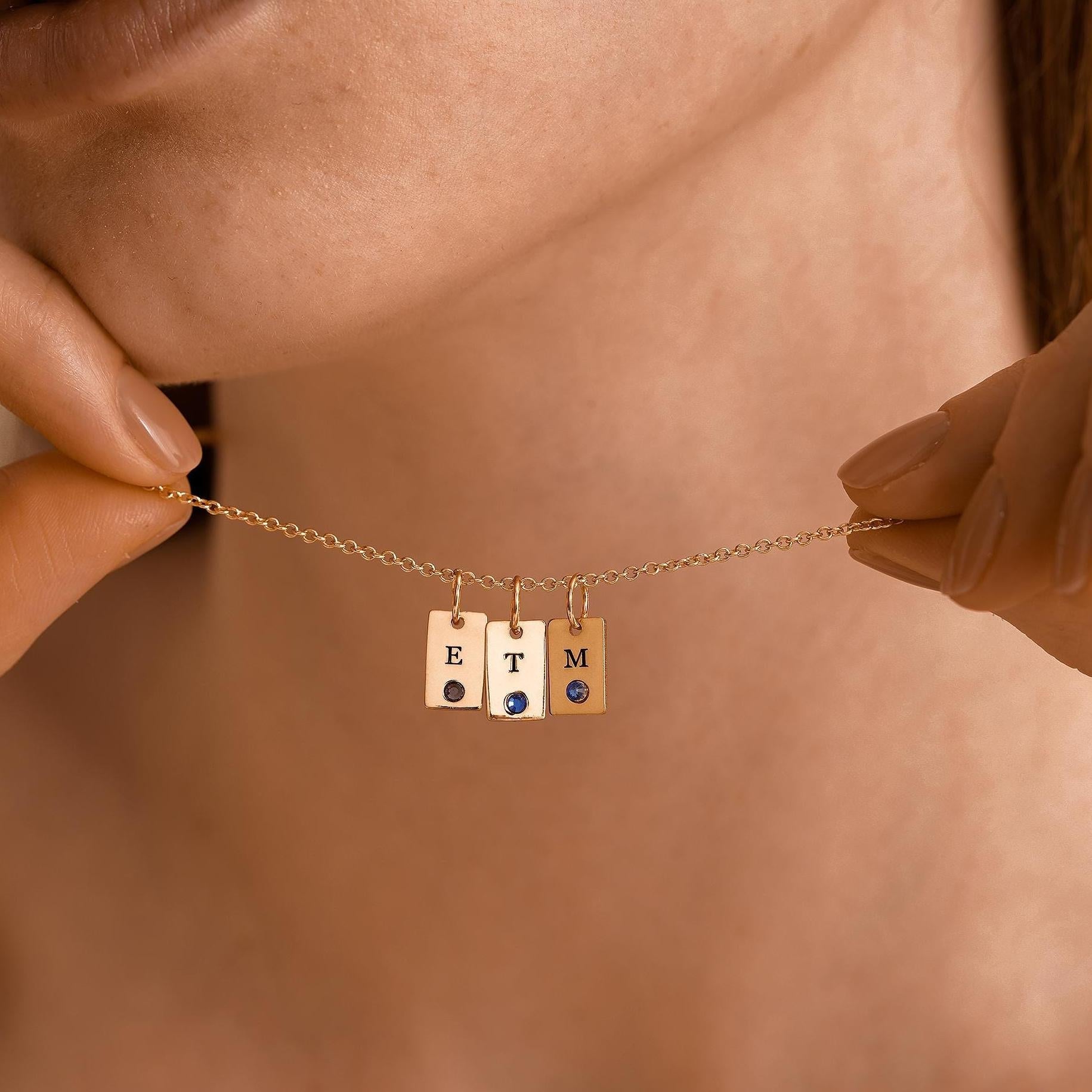 Celebrate life’s most cherished moments with our Custom Birthstone Initial Tag Necklace—a delicate fusion of elegance and sentiment. Whether honoring a birthday, anniversary, or simply a bond that shines bright, this necklace is more than jewelry; it’s a wearable memory.