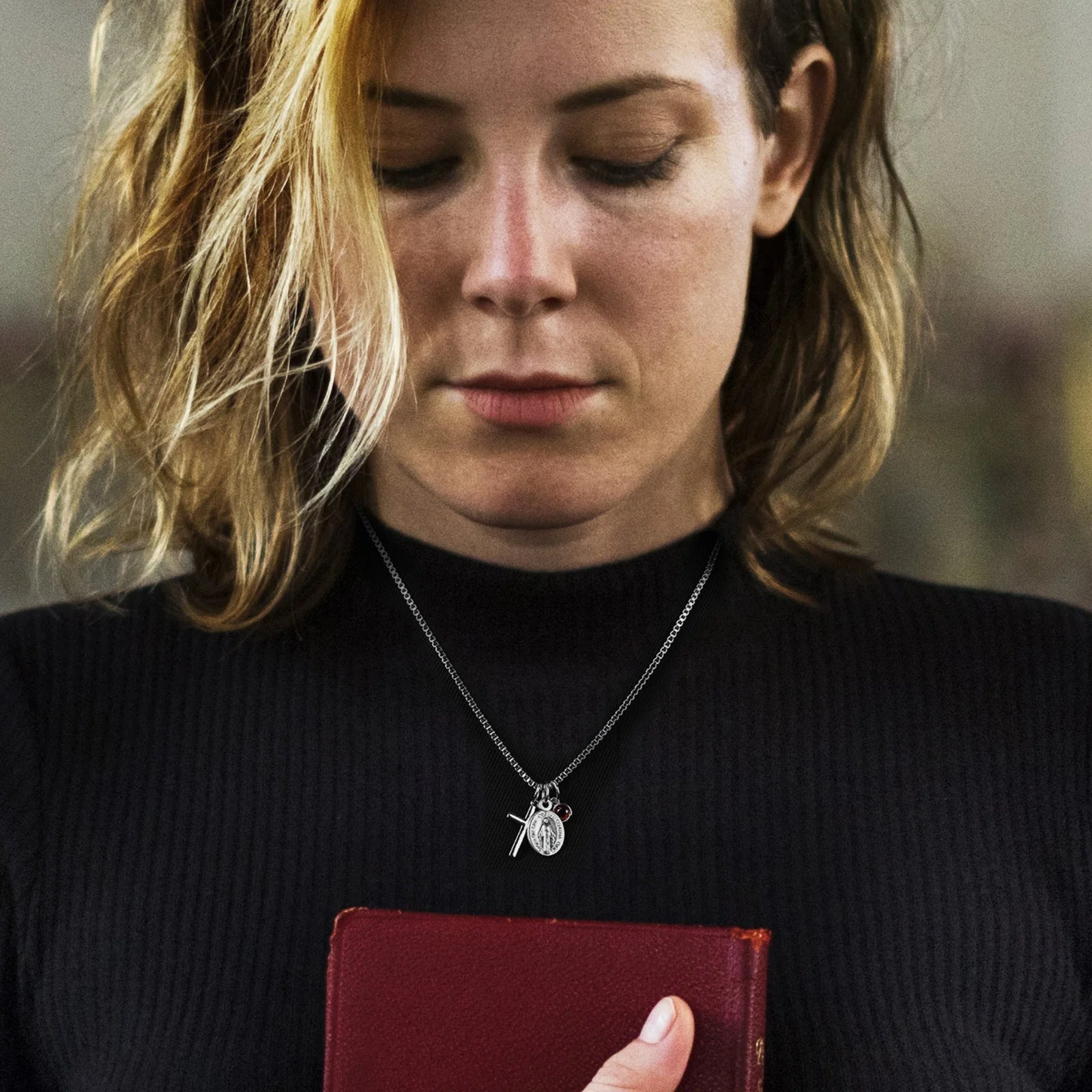 Crafted with attention to detail, this dainty piece offers both elegance and spiritual significance, making it an ideal accessory for daily wear or a thoughtful gift. The birthstone adds a unique element that reflects individuality, while the cross and Virgin Mary medal serve as enduring symbols of faith. Perfect for those seeking a subtle yet profound expression of their beliefs, this necklace balances style and devotion seamlessly.