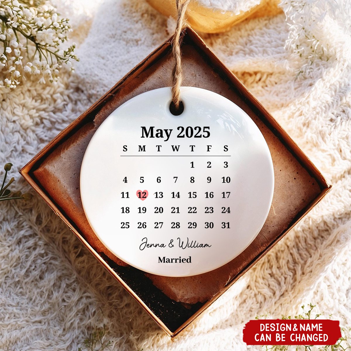 Make their special day unforgettable with a custom ceramic ornament featuring their names, special date, and a heartfelt message. 💗Perfect as a: