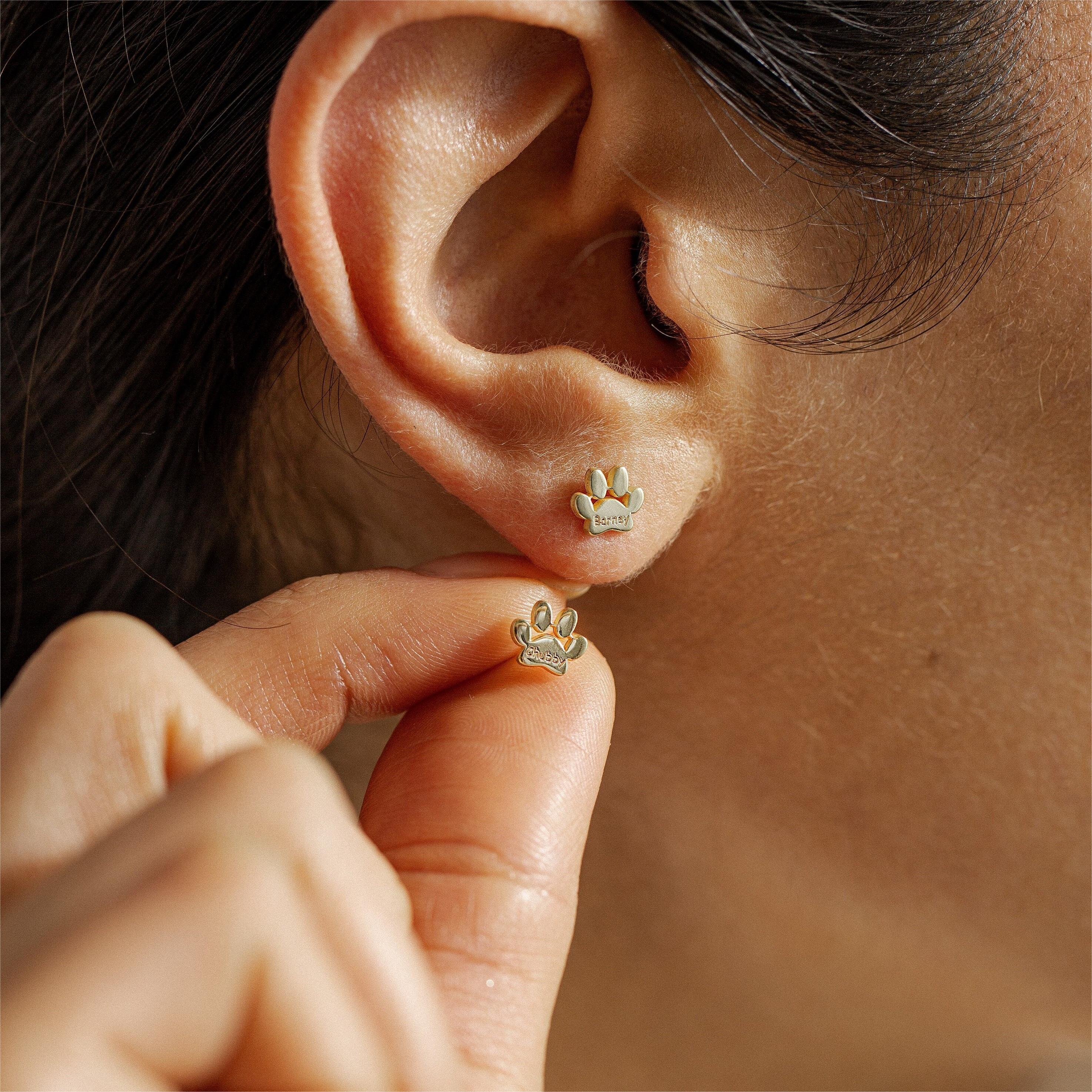 Personalized Paw Earrings, Gift for Pet Lovers, Pet Remembrance Studs