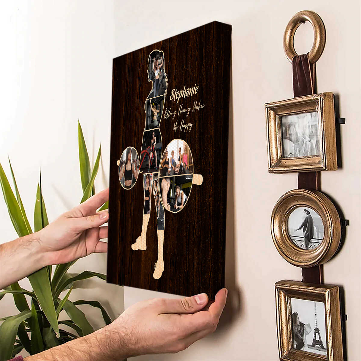 Personalized Weightlifting Women Canvas, Custom Weightlifting Lover Photo Collage Canvas