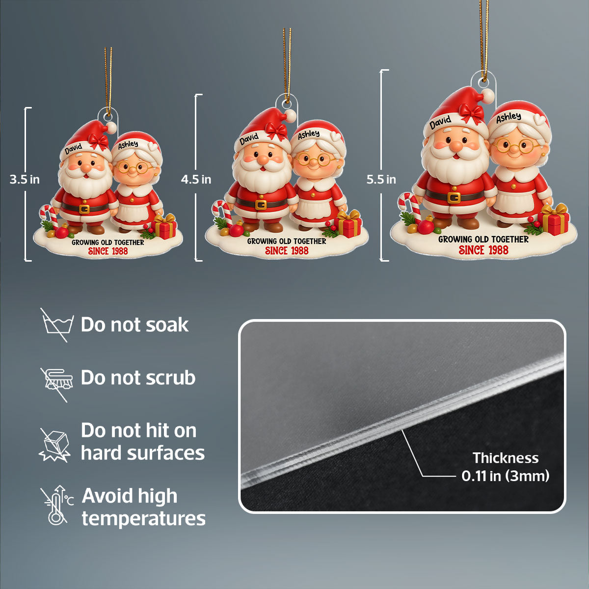 💖This personalized acrylic ornament immortalizes the beautiful journey of growing old together, just like Santa and Mrs. Claus. Whether it’s your first Christmas as a couple or your 50th anniversary, this keepsake is a tender reminder that the best gifts aren’t just given… they’re shared.✨
