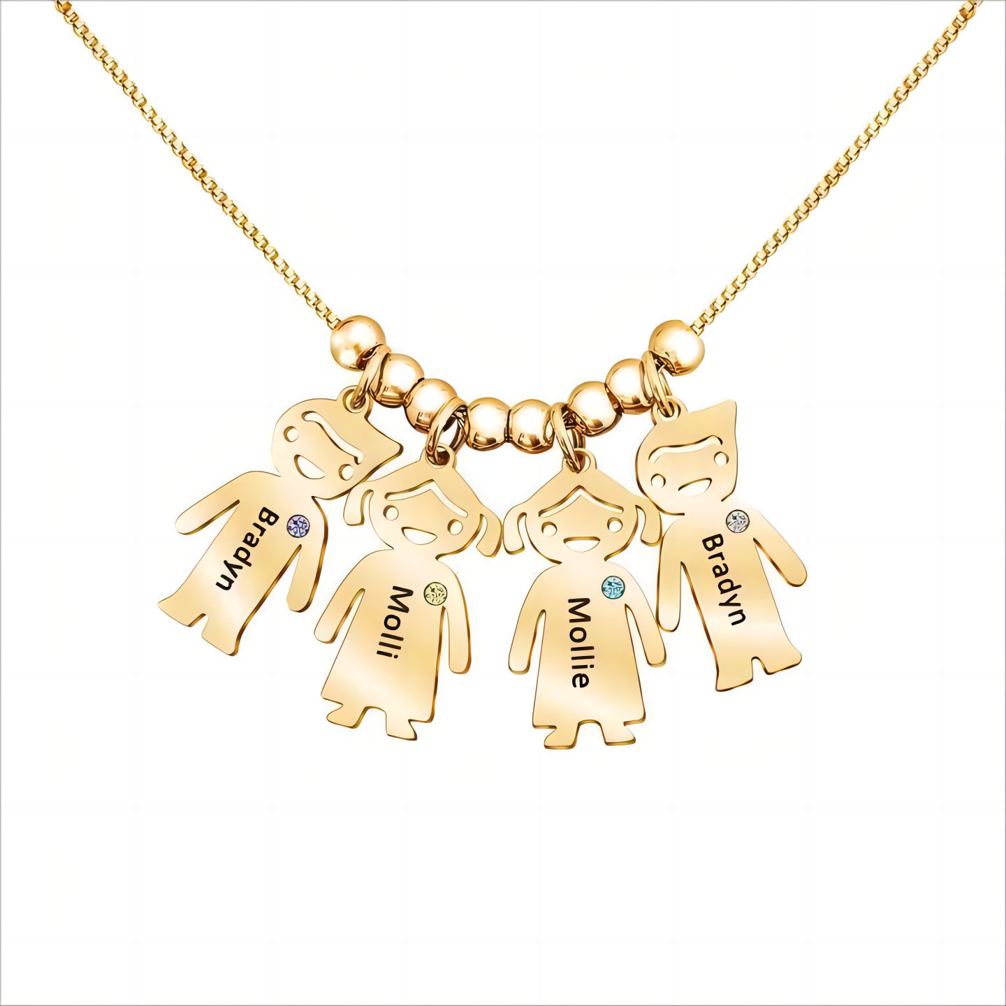 👦👧Expertly crafted for the special mothers and grandmothers in your life, our Personalized Birthstone Children Shape Necklace captures the unique bond between generations. Featuring a delicate chain adorned with birthstone children charms, each one representing a beloved child or grandchild, this necklace is a beautiful display of love and family. Customizable and meaningful, it's the perfect gift for any occasion.💕😍