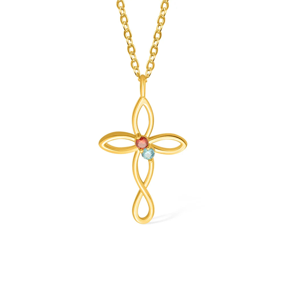 šThis personalized wrapped cross necklace is a beautiful gift for mom or grandma on their birthday or Mother's Day. Add 1-5 family birthstones to represent loved ones, symbolizing the importance of family. This thoughtful gift is sure to make her feel loved and cherished.