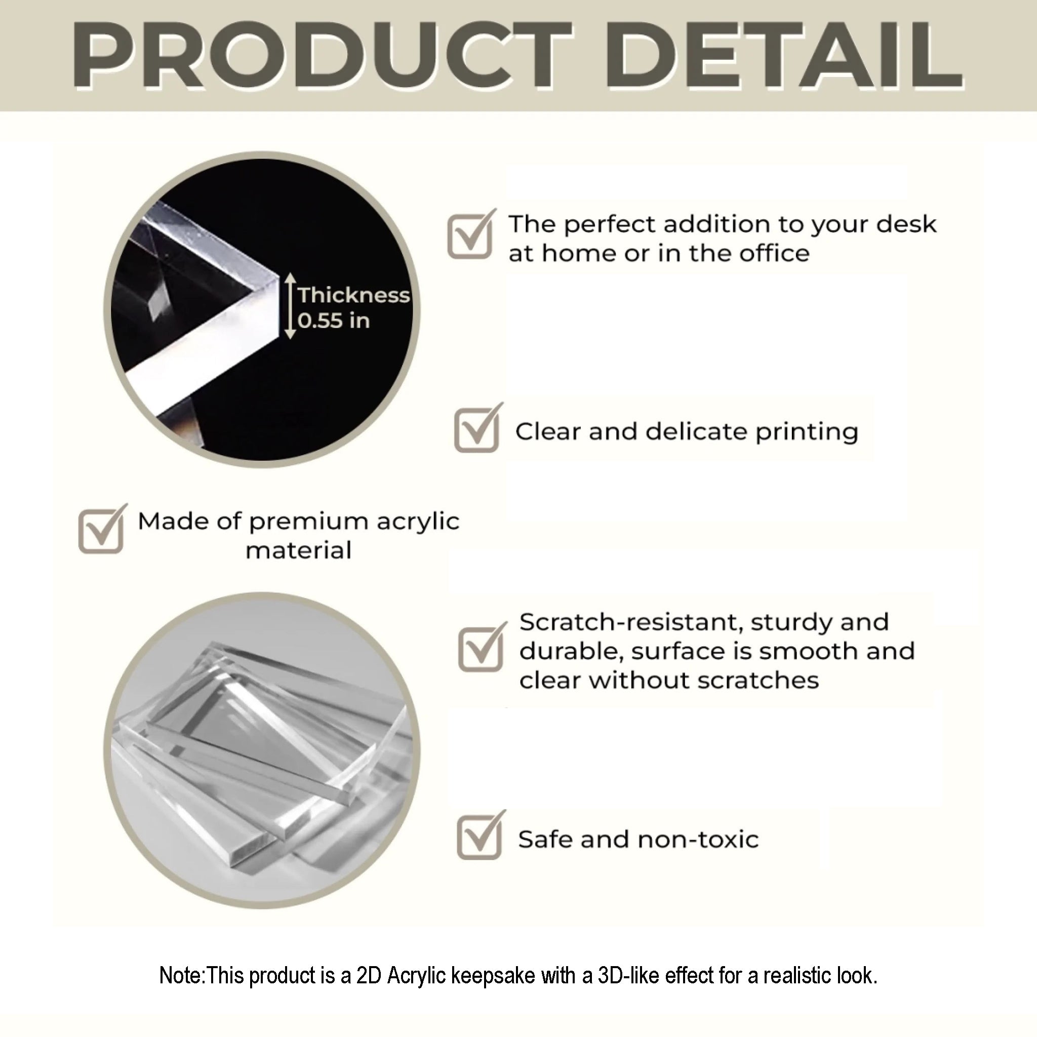 Please note: This product is a 2D Acrylic keepsake with a 3D-like effect for a realistic look.