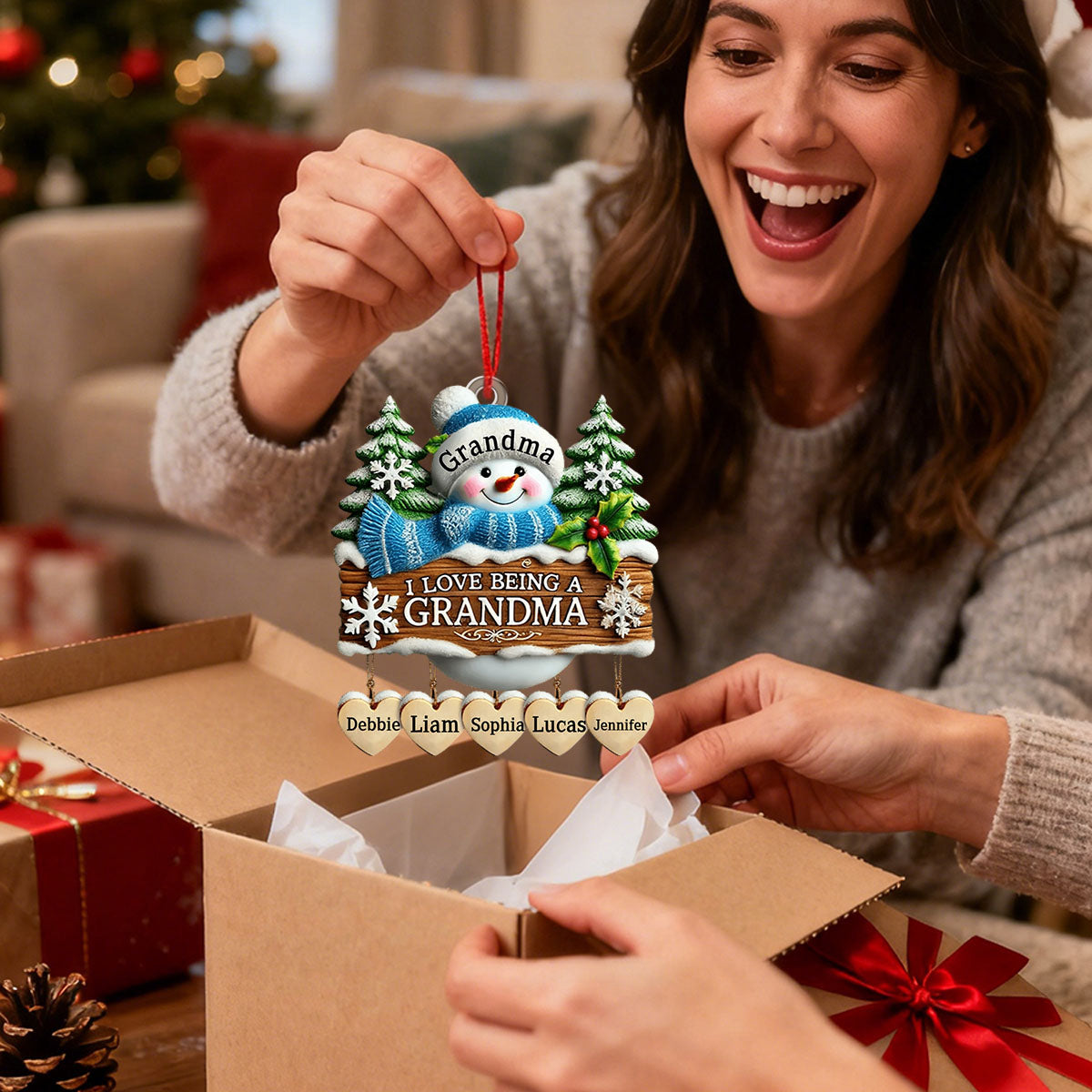 Celebrate the joy of grandmotherhood with this heartwarming personalized Christmas ornament. Crafted as a cherished keepsake, it's the perfect way to honor the special bond between grandma and her loved ones. Display it proudly on your tree year after year, or gift it to the grandmother in your life who deserves to feel appreciated. This meaningful home decor piece captures the warmth and love that makes being a grandma truly special, making every holiday season a little more memorable.