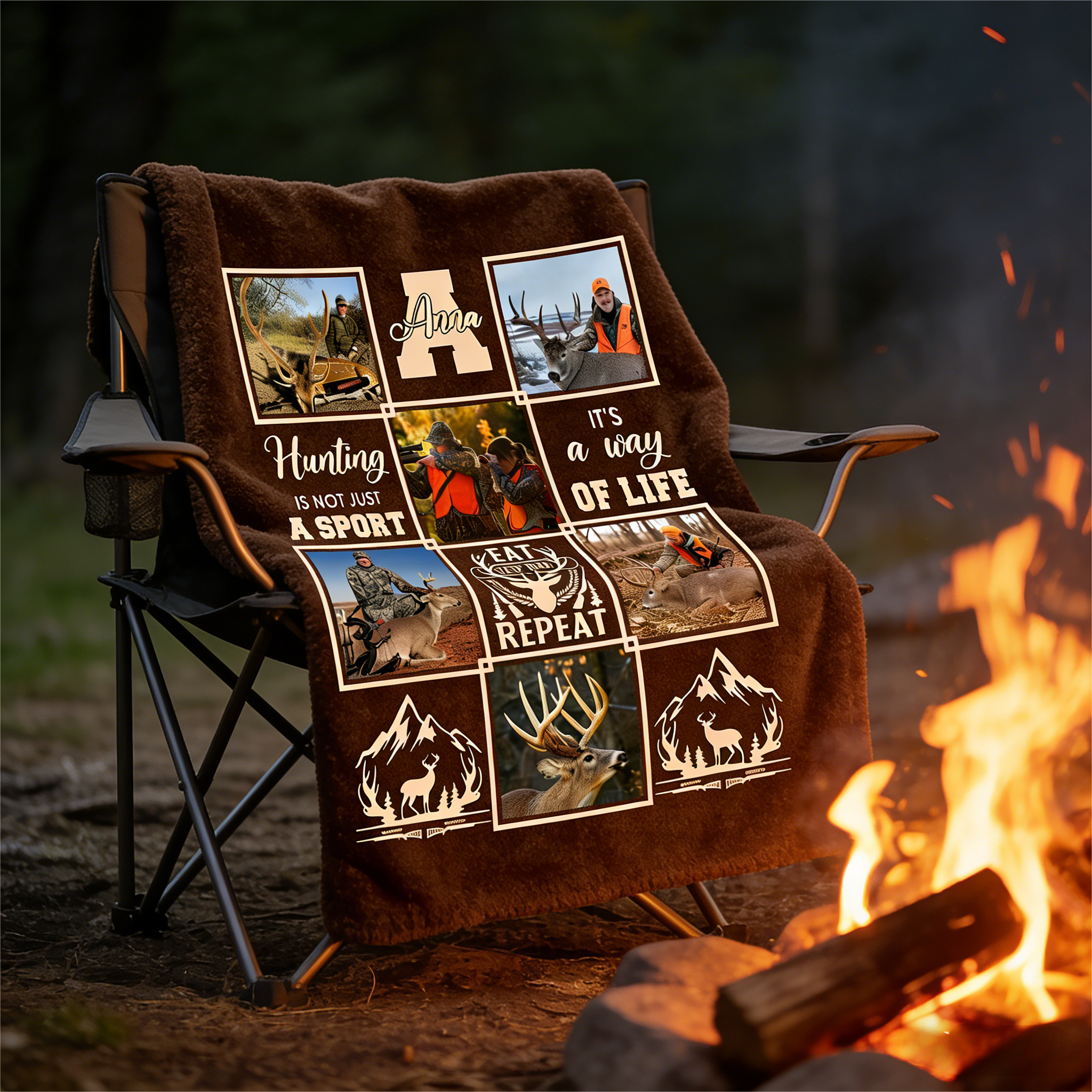 This one-of-a-kind blanket weaves together your most memorable hunting photos into a rich, high-resolution collage, creating a warm and meaningful tribute to seasons spent in the stand and stories shared around the campfire.