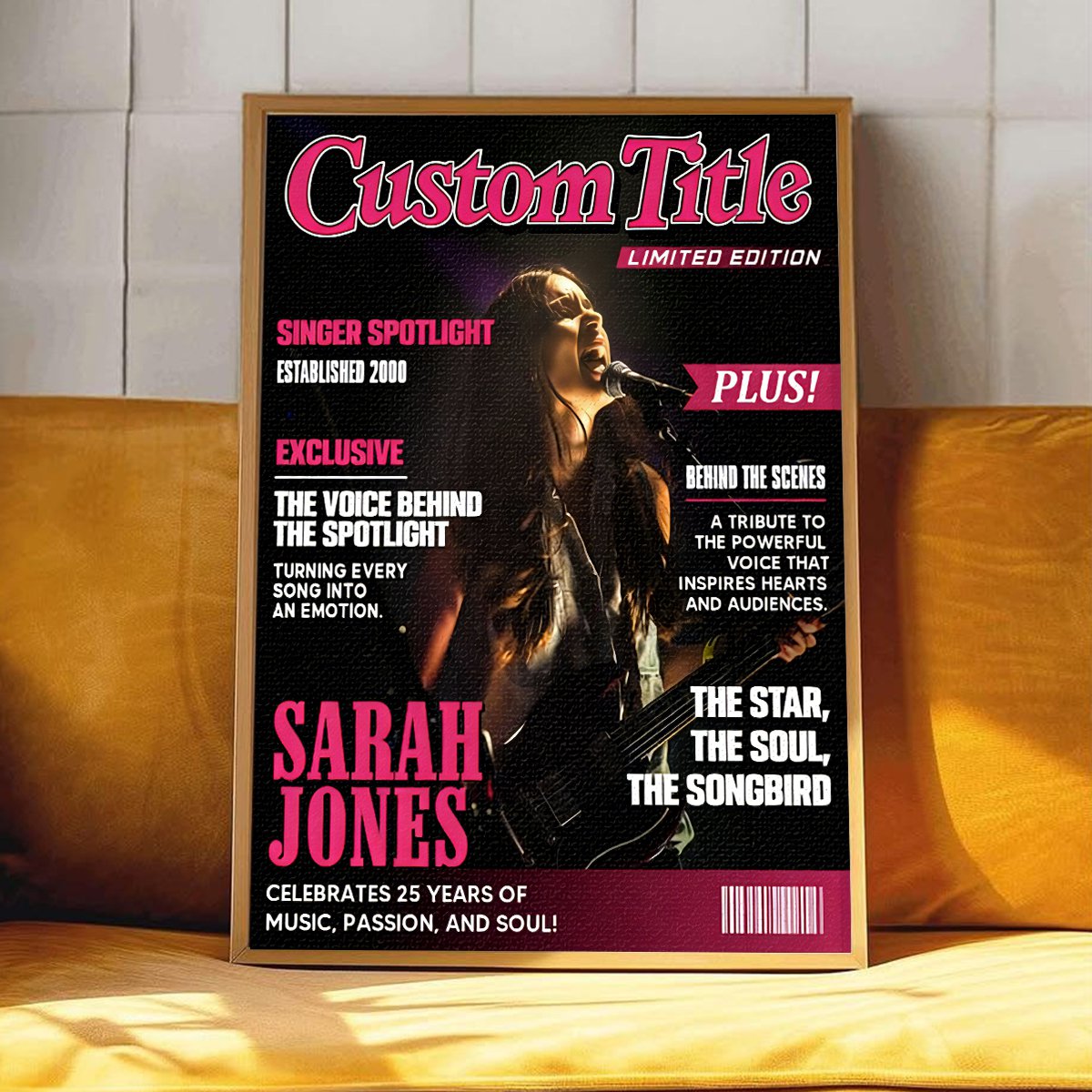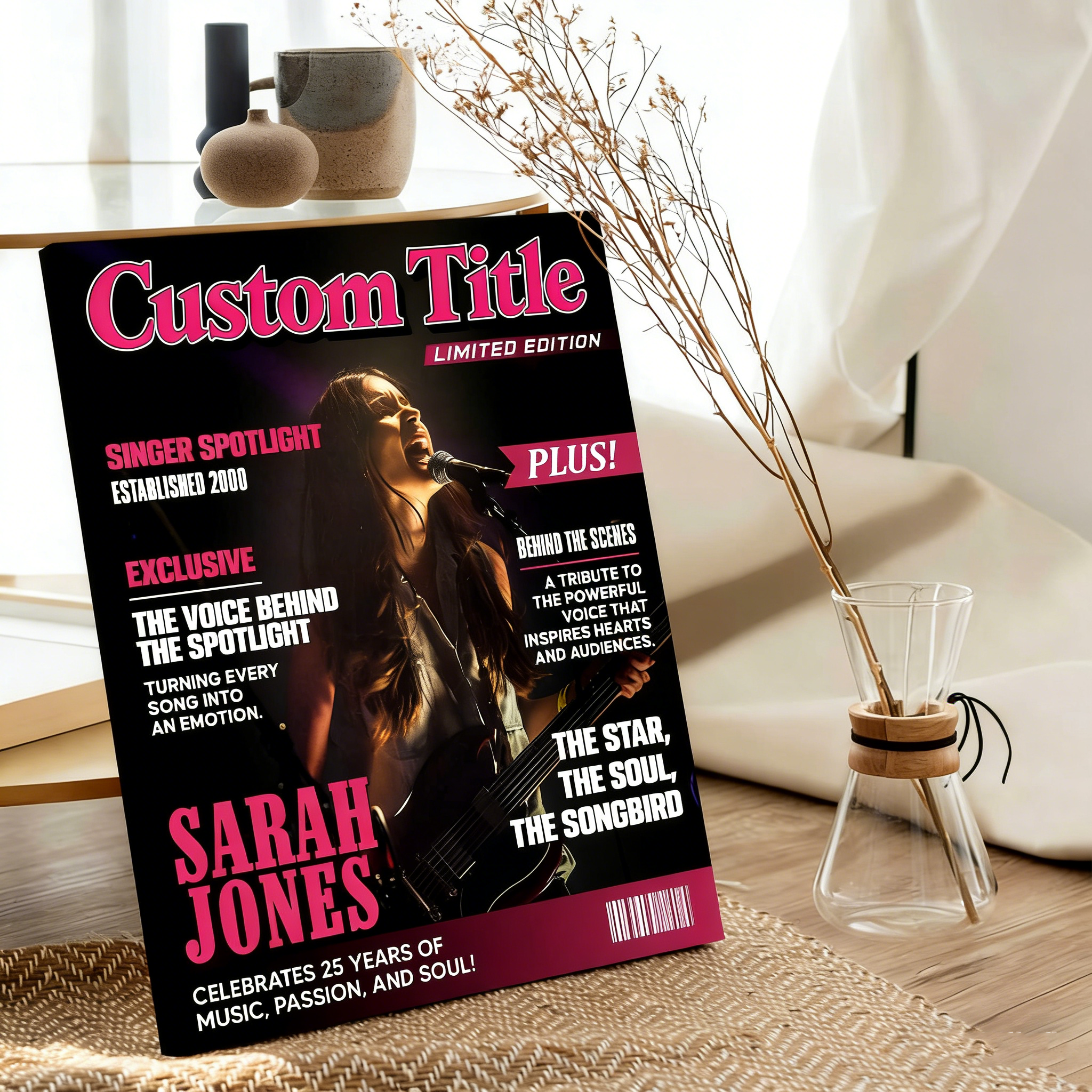 Celebrate the star in your life with this Personalized Singer Magazine Cover Poster—a custom-designed tribute made for every singer, karaoke queen, shower superstar, and music lover! Designed just like a real music magazine, it features their photo, stage name, a bold headline, and playful "articles" about their vocal range, signature songs, or on-stage charisma.