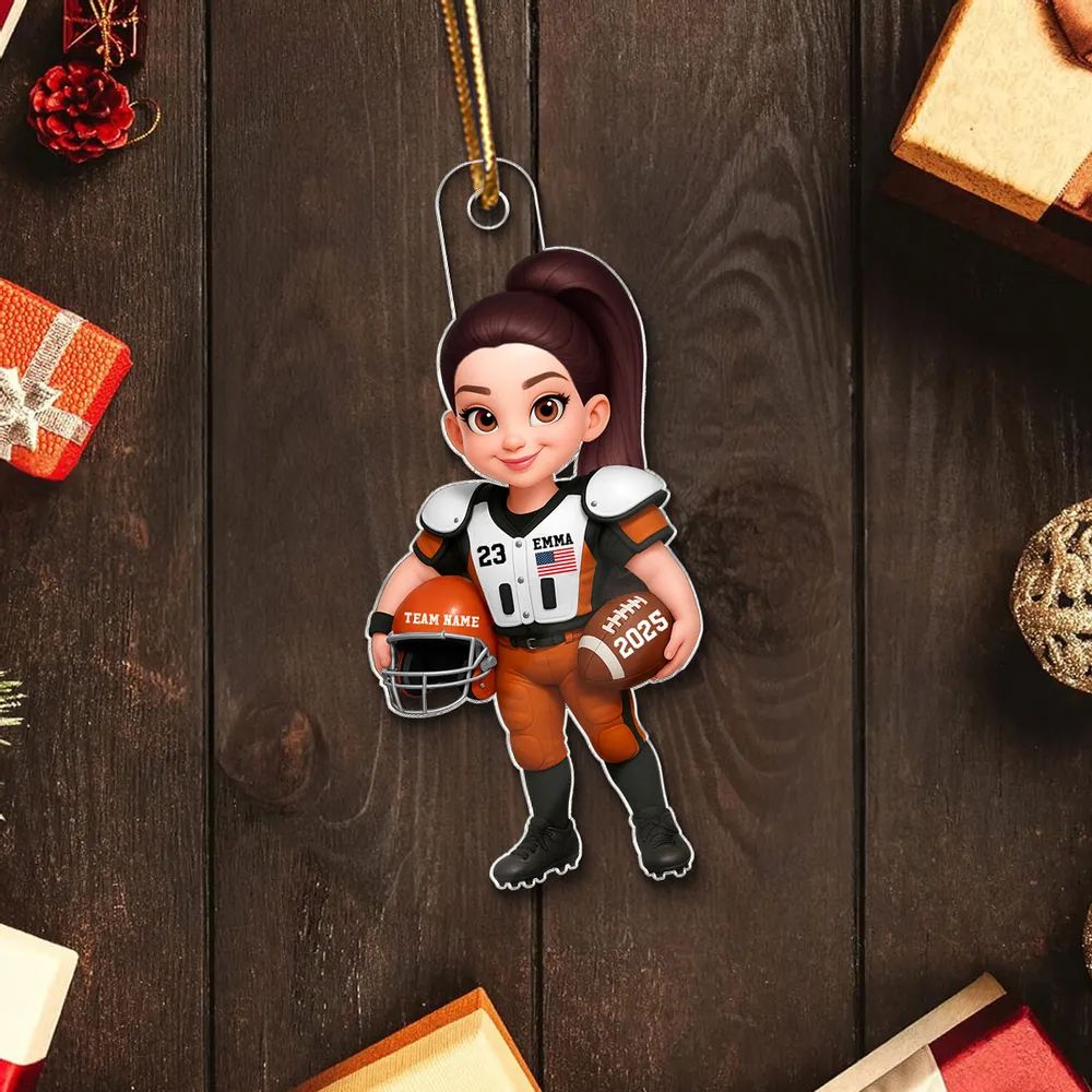 This acrylic ornament can be customized with any name, number - perfect for celebrating players, coaches, and super fans. The durable double-sided print looks great on Christmas trees or as year-round decor.