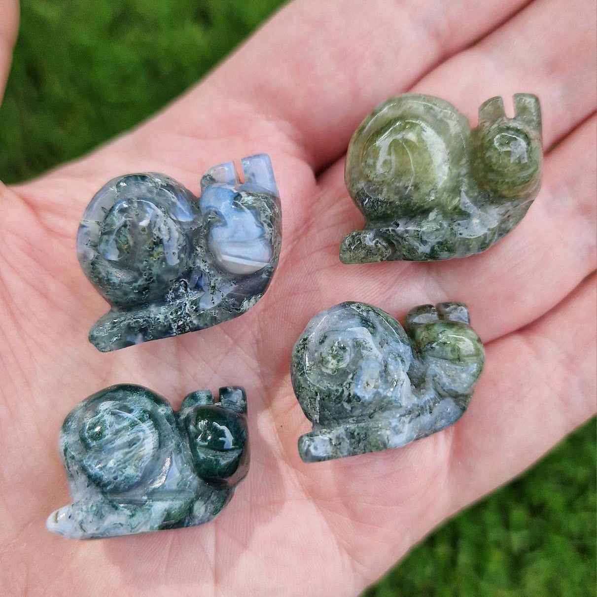🌻🌷Bring a touch of charm and natural beauty to any garden with this Cute Snail crafted from Moss Agate crystal. Known for its unique patterns and soothing green hues, Moss Agate symbolizes growth and renewal, making it a thoughtful gift for gardeners.🪴