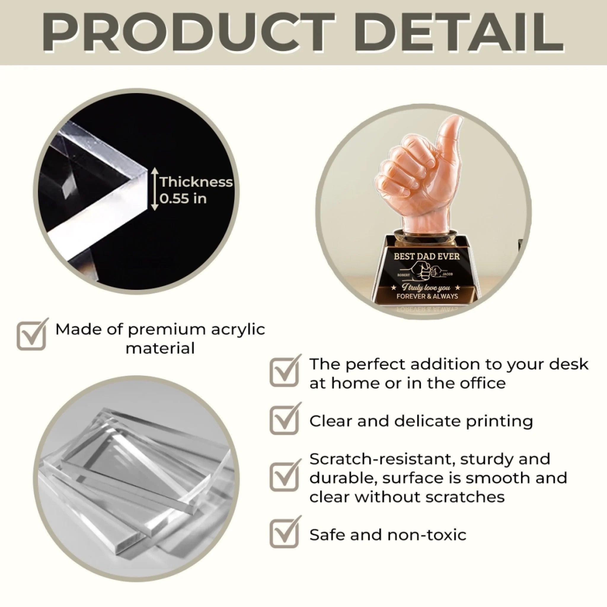Honor Dad with a standout gift that celebrates his superhero status! This custom-shaped acrylic fist plaque can be personalized with family names, making it a playful trophy that declares him "Dad Of The Year, Every Year." Perfect for his office, man cave, or anywhere he deserves to show off his #1 Dad credentials. A fun keepsake that packs a punch of appreciation!👍🏻