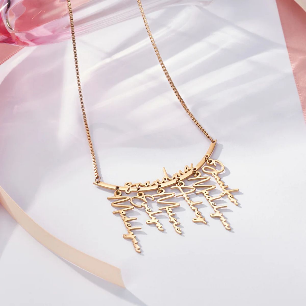 This exquisite necklace allows you to Personalize it with the names of 1 to 7 family members, and the name pendant is hung on the necklace through a ring, creating a unique sense of beauty and art. You can also customize the necklace with a title such as "Mom" to perfectly express your love.☺️